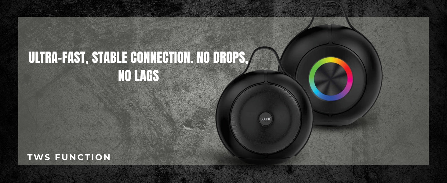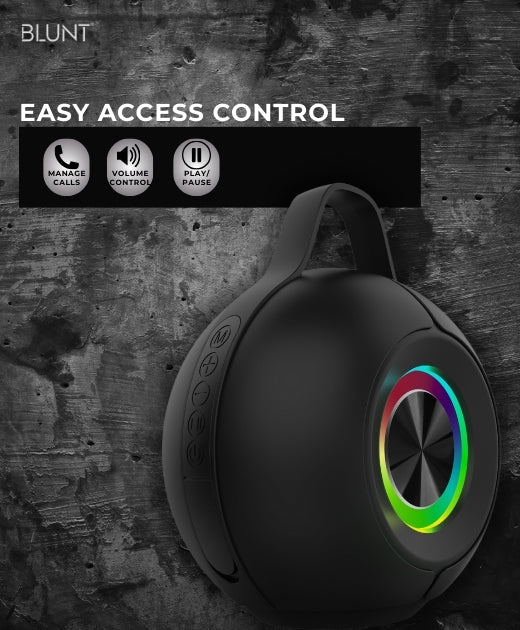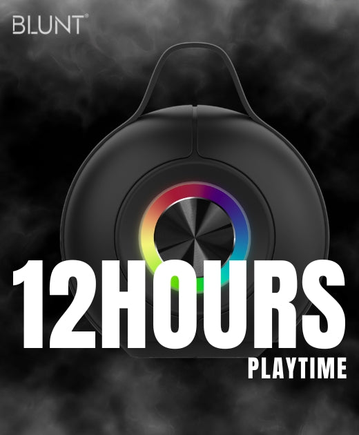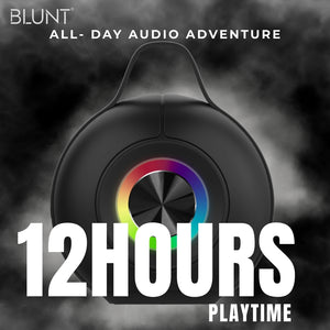 Turn up the vibe with the BLUNT SOUNDWAVE B5, a 15W portable Bluetooth speaker built for bold sound and visual flair. Packed with a 2000mAh battery, it offers up to 12 hours of non-stop music, whether you're chilling at home or taking the party outdoors.